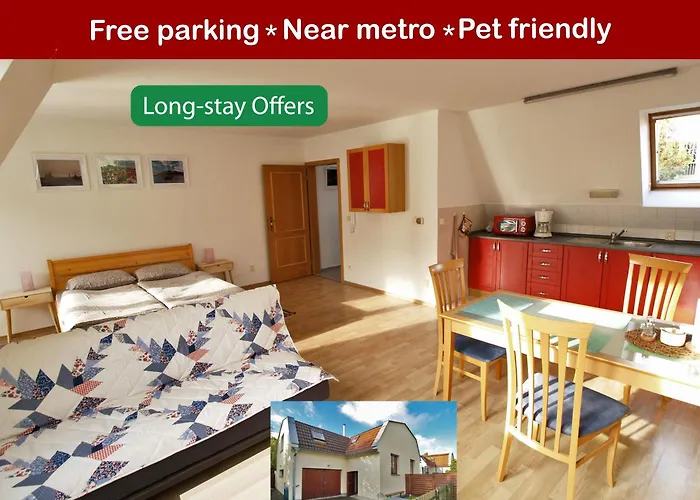 Apartmán Oscar'S Prague Apartment Near The Metro poskytuje patio a zahradu, a nachází se ve městě Praha. Karlův most je vzdáleno 6 km, zatímco Kulturní centrum MeetFactory lze zastihnout za 10 minut jízdy od apartmánu.